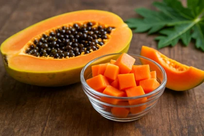 Papaya: vitaminokban és antioxidánsokban gazdag gyümölcs; papain enzimje segíti az emésztést, csökkenti a gyulladást és erősíti az immunrendszert. Fogyasztható frissen,…